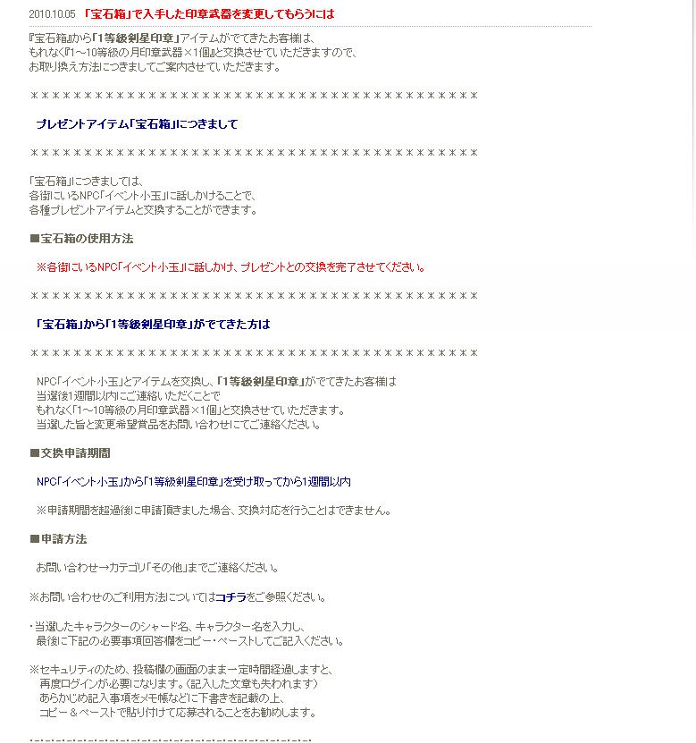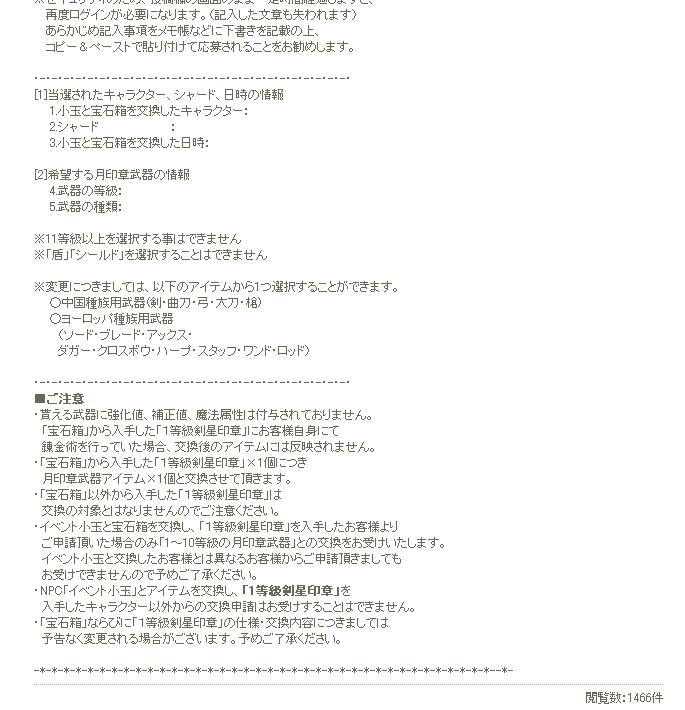 宝石箱から銅剣が出てから1週間以内に申請すれば、1級~10級の好きな月武器に変更できるというもの。