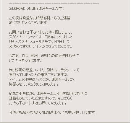 前にスタンプでもらえたスキル7日は交換不可&倉庫可能だったから、倉庫と交換逆に書き間違えてるだけで今回のも交換不可&倉庫可能が本当は正しいとじゃないかな?と思ってたんだけど・・・