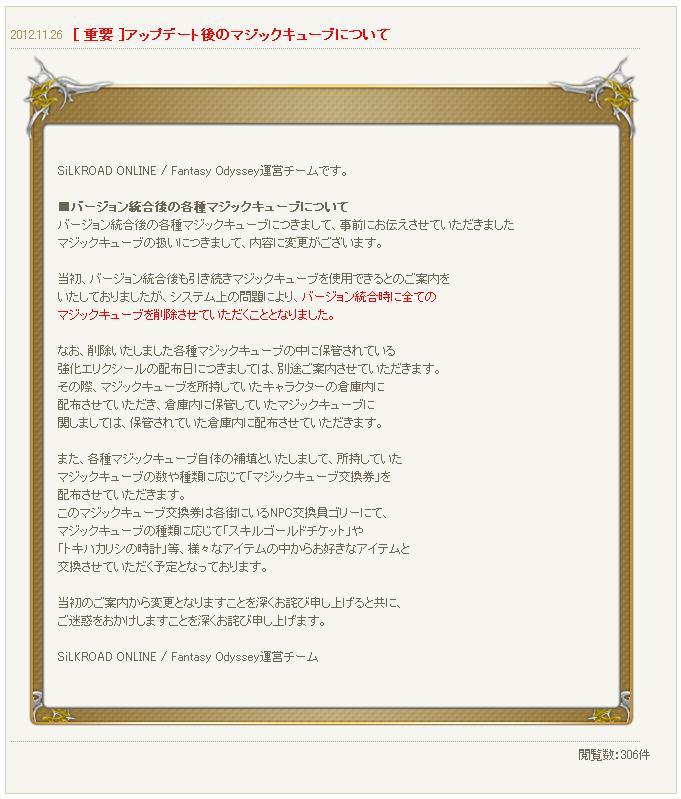 マジックキューブの扱いにつきまして、内容に変更がございます。