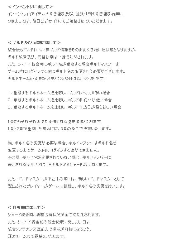 また、シャード統合時にギルド名が重複する場合ギルドマスターは