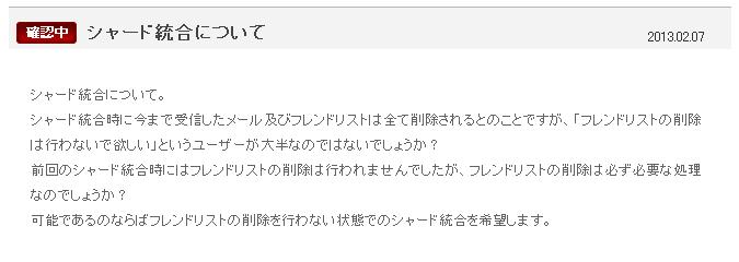 シャード統合時に今まで受信したメール及びフレンドリストは全て削除されるとのことですが、「フレンドリストの削除は行わないで欲しい」というユーザーが大半なのではないでしょうか?
