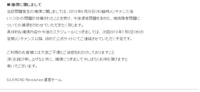 [ 重要 ] 遅延(ラグ)問題及び一連の補償について2013.06.26SiLKROAD Revolution運営チームです。