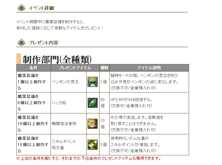 ペンギンの思念×1個、ハッカ飴×50個、瞬間復活巻物×10個、飛雪花×1個をプレゼント
