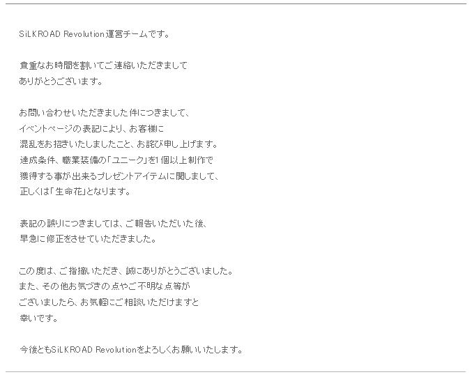 SiLKROAD Revolution運営チームです。