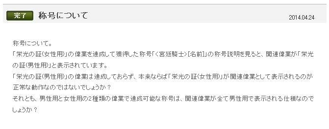 それとも、男性用と女性用の2種類の偉業で達成可能な称号は、関連偉業が全て男性用で表示される仕様なのでしょうか?