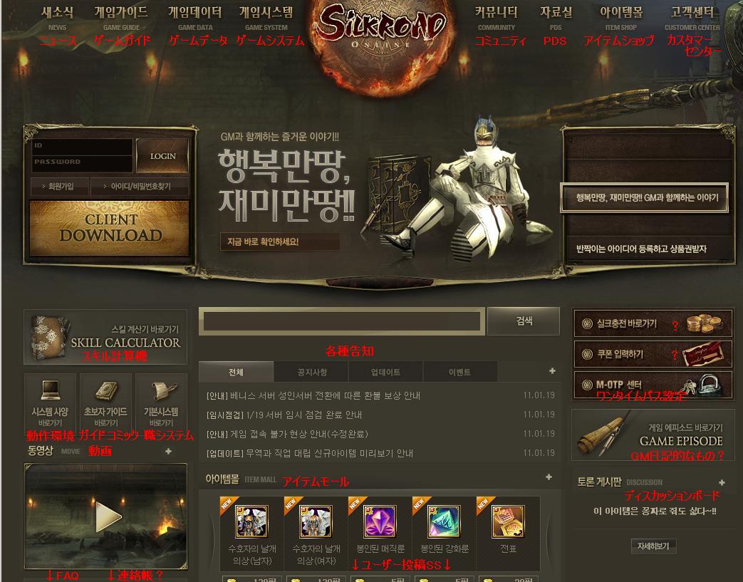 韓国シルク公式 http://kr.joymax.com/silkroad/