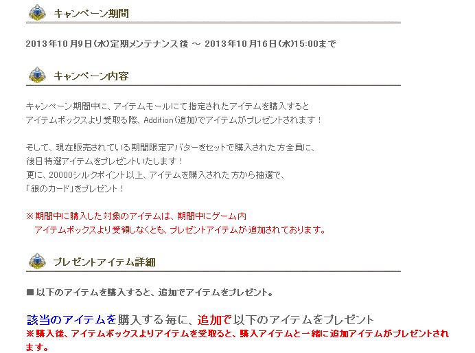 2013年10月13日(日)23:00 ~ 2013年10月20日(日)23:00まで