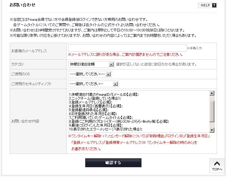 1.休眠復旧対象のPmangID/EメールID【必須】: