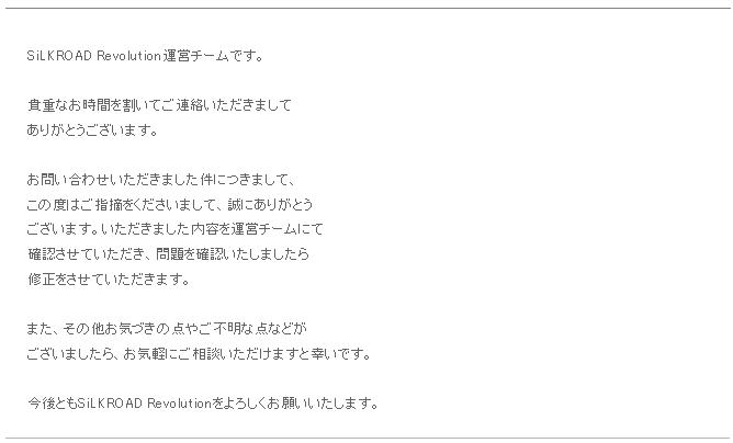 日頃より、SiLKROAD Revolutionを