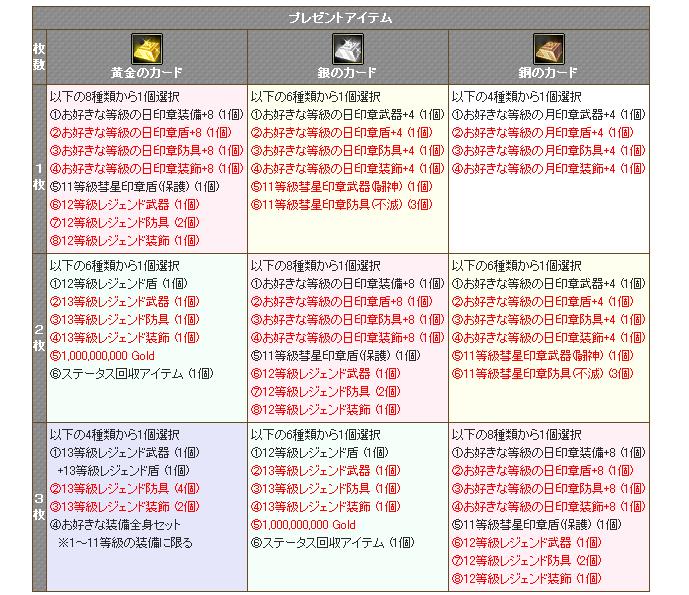 ・プレゼントアイテム配布日時