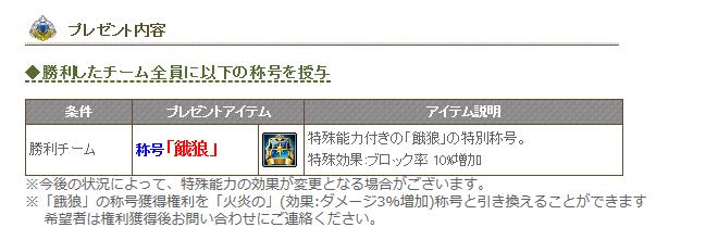 今回のイベントで『餓狼』の代わりに『火炎の』称号を受け取ってしまった