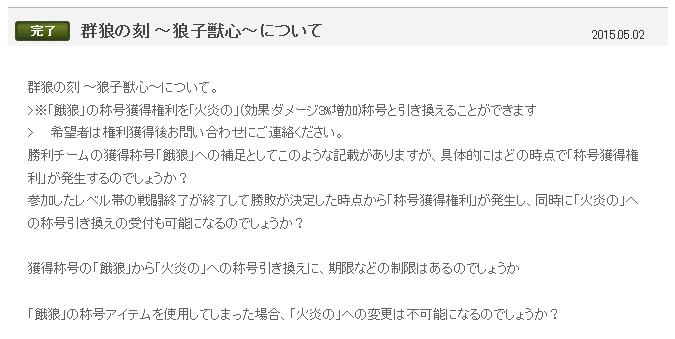 そのため、『群狼の刻 ~狼子獣心~』のイベントにて『火炎の』称号を選択した