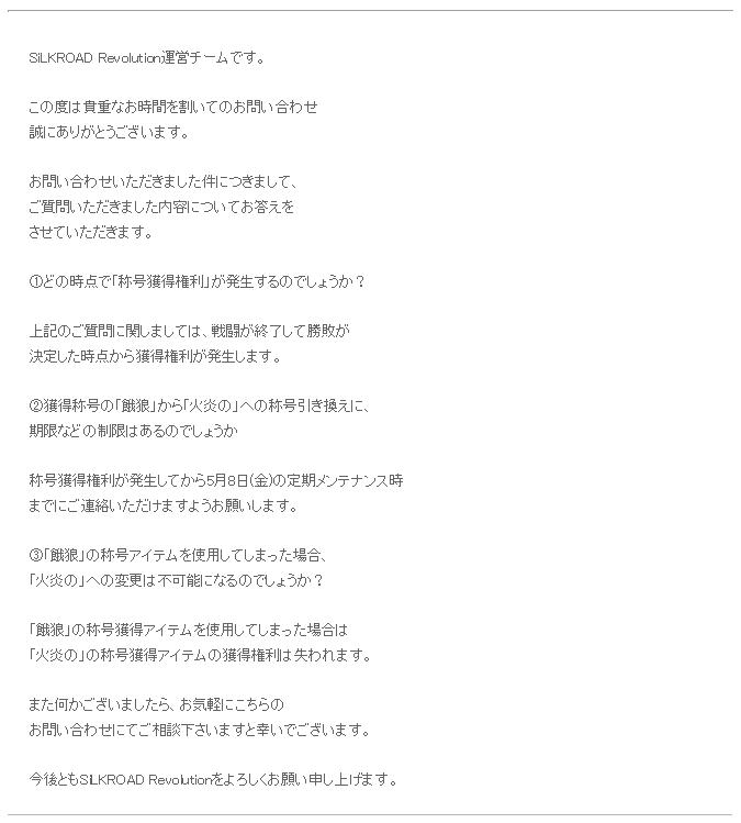 日頃より、SiLKROAD Revolutionをご愛顧いただき誠にありがとうございます。