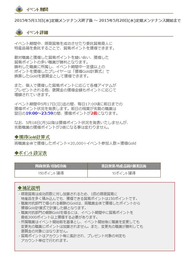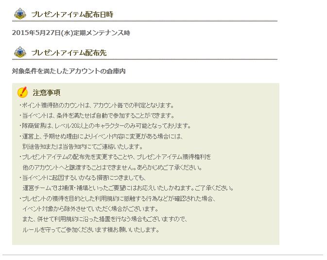 2015年5月20日(水)定期メンテナンス後 ~ 2015年6月17日(水)定期メンテナンスまで