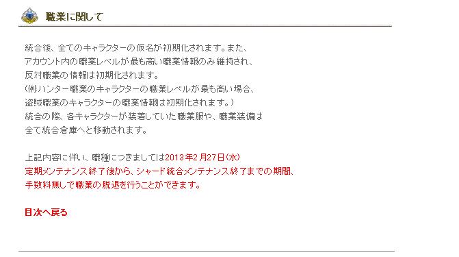 注意点とかの差分で気になるのは「2013年2月27日(水)メンテ後~統合メンテ前まで職脱退手数料が無料」ってくらいかな?