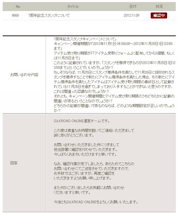 人によっては25日分スタンプの扱いでアイテム獲得可否が決まるわけだし、14日のメンテ後くらいには返答あってほしいんだけどなぁ・・・
