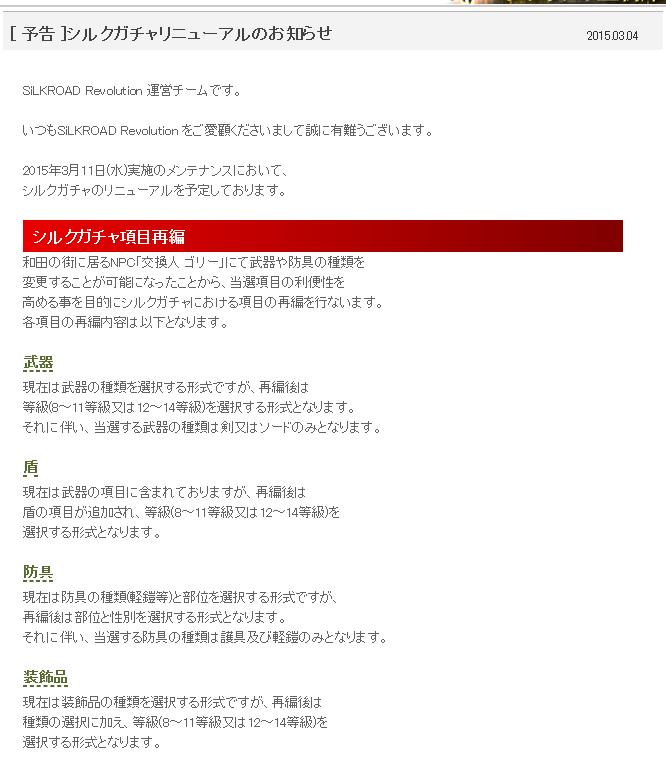 SiLKROAD Revolutionへの統合によってゲーム内の状況が変化することとなりましたが、