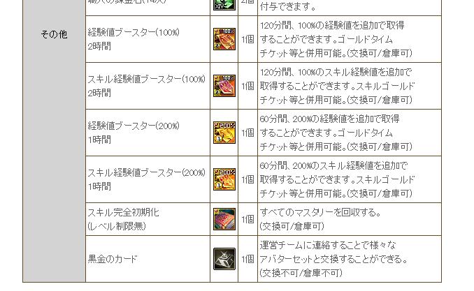> ・当キャンペーン対象キャラクターが「ステータス回収薬」を使用した場合、
