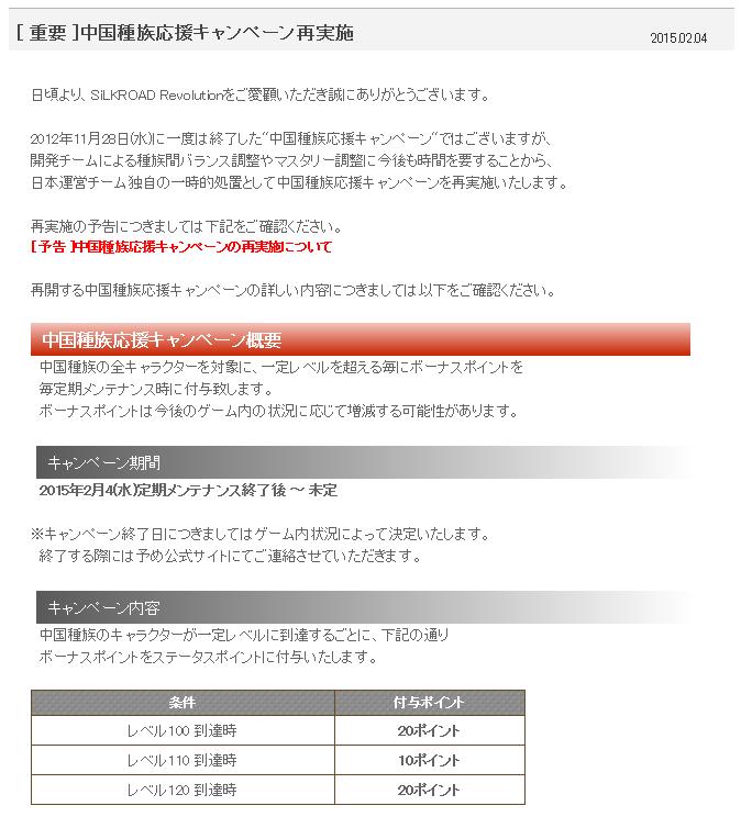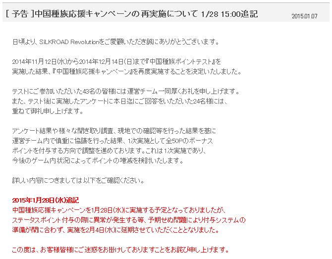 [ 予告 ]中国種族応援キャンペーンの再実施について 1/28 15:00追記