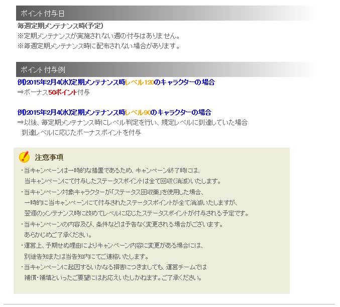 > 一時的に当キャンペーンにて付与されたステータスポイントが全て消滅いたしますが、