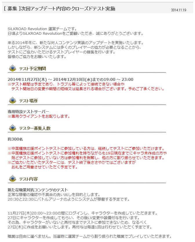[ 募集 ]次回アップデート内容のクローズドテスト実施 2014.11.19